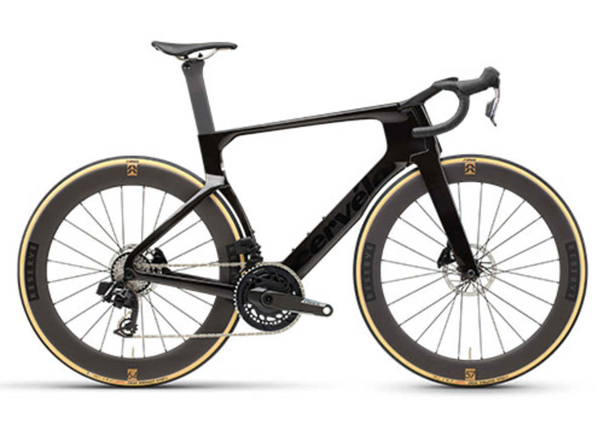 - Reserve 57|64 Designed for S5: The new Reserve 57|64 wheelset was co-developed by Reserve and Cervélo, and designed for use in the new S5. The rear wheel’s asymmetry matches the seat tube, ensuring air flows smoothly over both. The new wheelset is 3 Watts faster than the 52|63 wheels, and weighs the same.