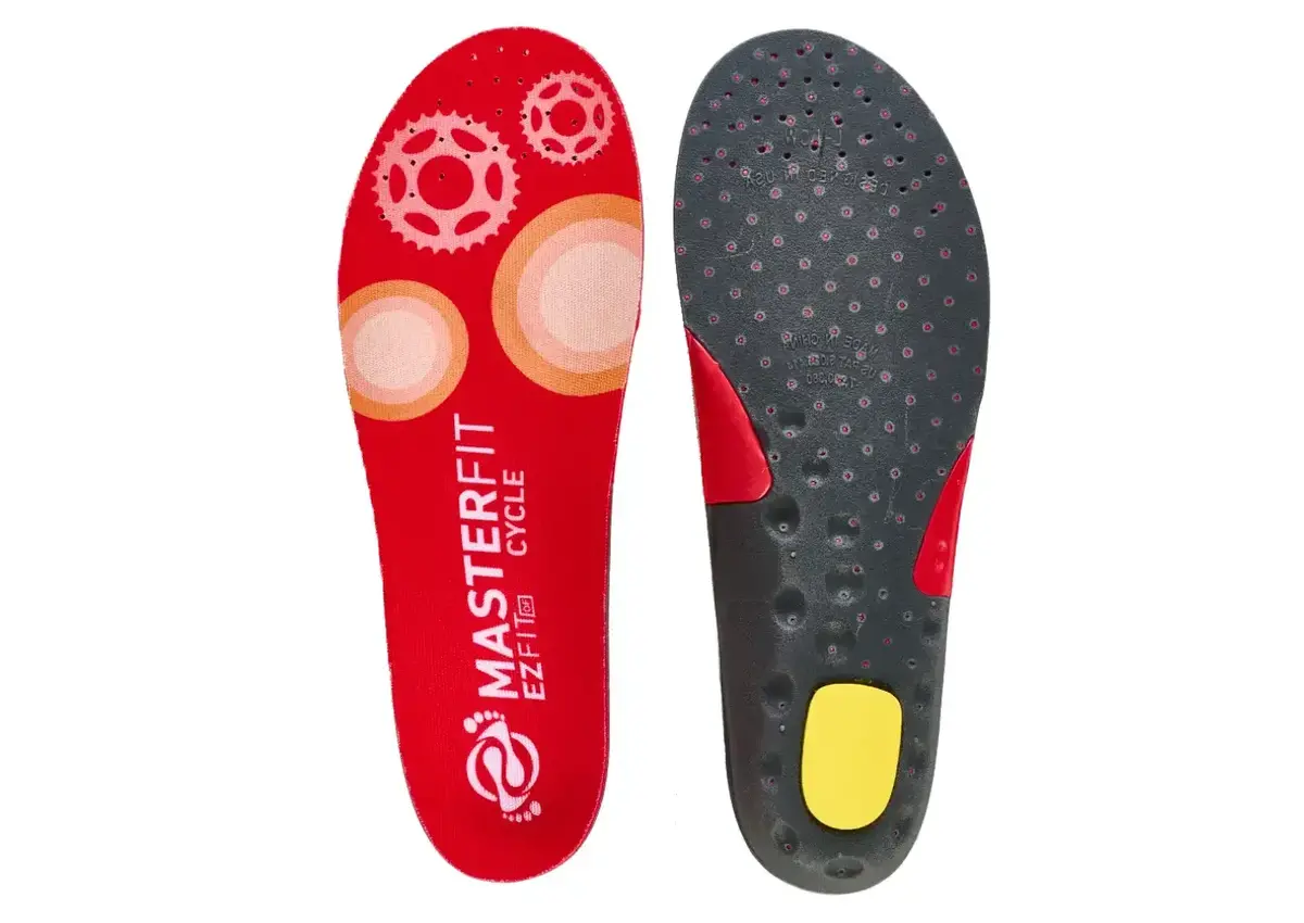 These cycling shoe insoles are specifically engineered to optimize efficiency and stability through the 360-degree pedal stroke rotation. EZFit Cycle cycling shoe insoles feature a full-length support shell with Masterfit’s exclusive PosiLink™ forefoot platform that maximizes power transfer to the pedals. The EZFit Cycle cycling shoe insoles have a biomechanical design that reduces stress on muscles, tendons and joints for longer, more comfortable riding. Designed to fit the low volume environment of most cycle shoes.