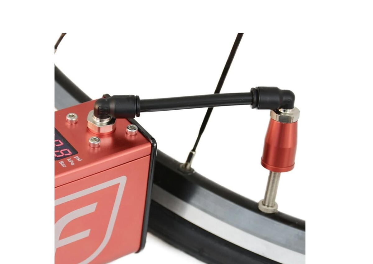 This kit fits directly to your Fumpa, miniFumpa or nanoFumpa to allow you to pump up tyres that have hard-to-reach valves. The elbow connectors have 360 degree rotation, which allow the nozzle to be oriented in any direction. The nozzle is made from CNC-machined aluminium. Quality Legris elbow connectors provided.