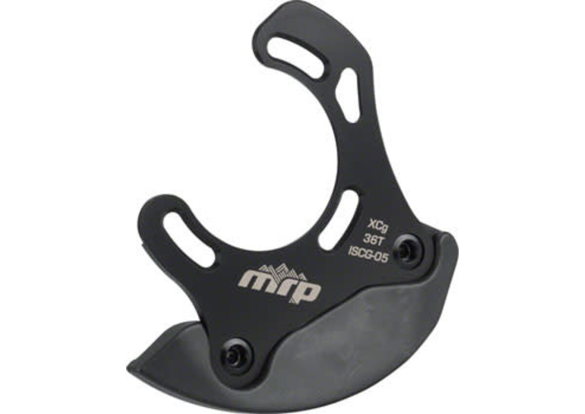 The MRP XCg bash guard mounts directly to the bike frame to protect the crank and chainrings from damage.
