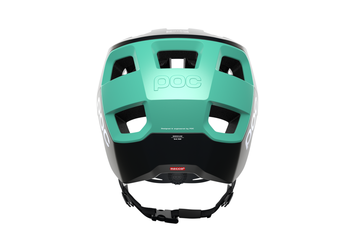 The helmet gives a seamless fit with the POC Ora goggles, which fit underneath the peak when not in use.