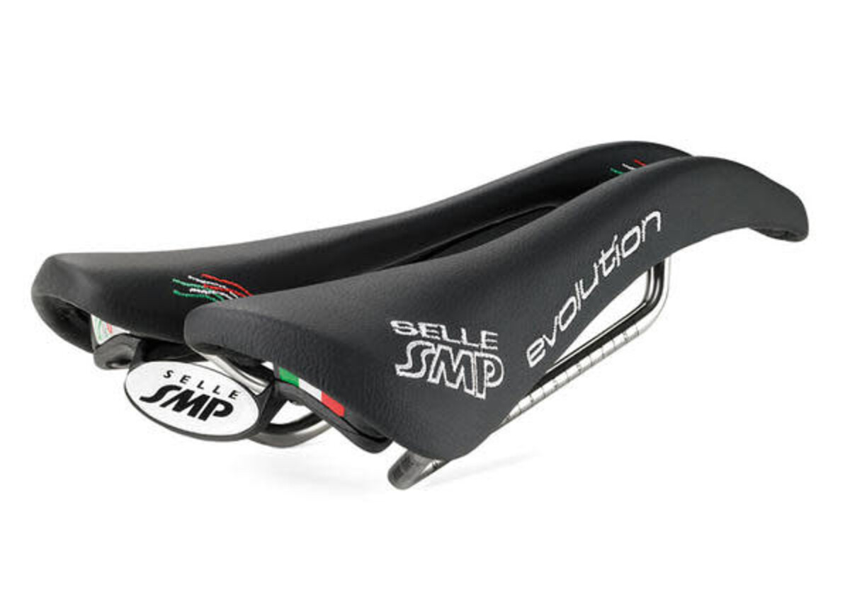 Selle SMP's Evolution sports their dropped nose design with a large open center channel that eliminates pressure on sensitive areas while still allowing full control in all conditions.