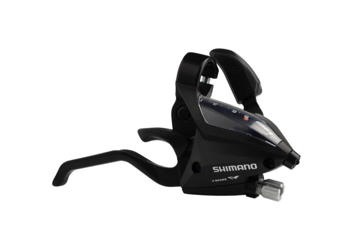 The Shimano ST-EF500 dual brake/shift lever features reach adjust technology and an optical gear display.