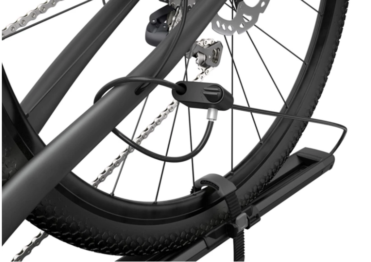- Locks the bike to the bike rack and the bike rack to the roof racks (locks sold separately)