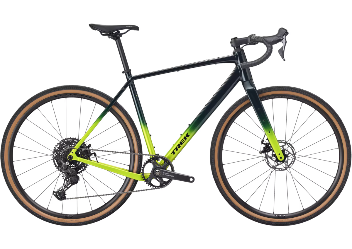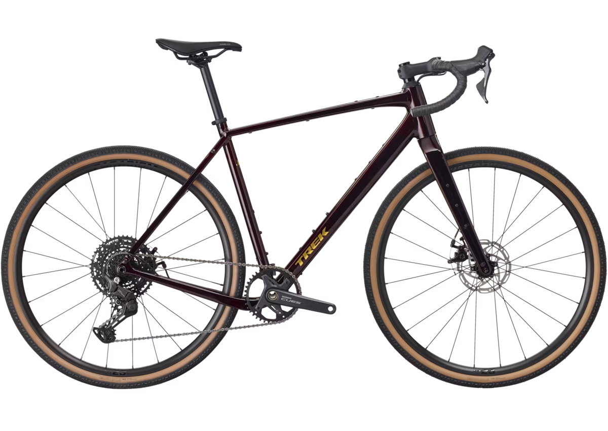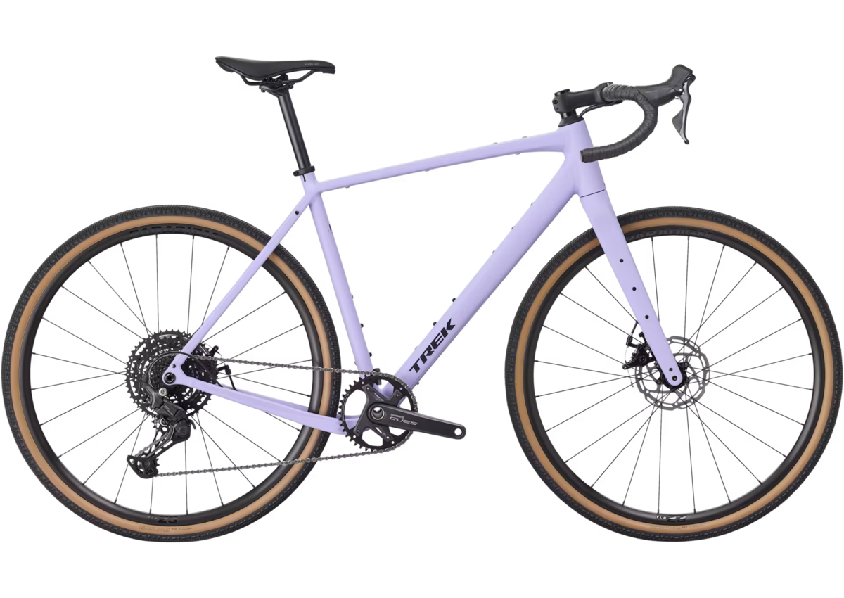 A 300 Series Alpha Aluminum frame with a full carbon fork, with clearance for up to 50mm tires. 10-speed Shimano CUES U6000 shifting, mechanical disc brakes, Bontrager Paradigm wheels with Bontrager Girona Pro Tubeless Ready tires, plus mounts for loading up with bags, racks, and gear.