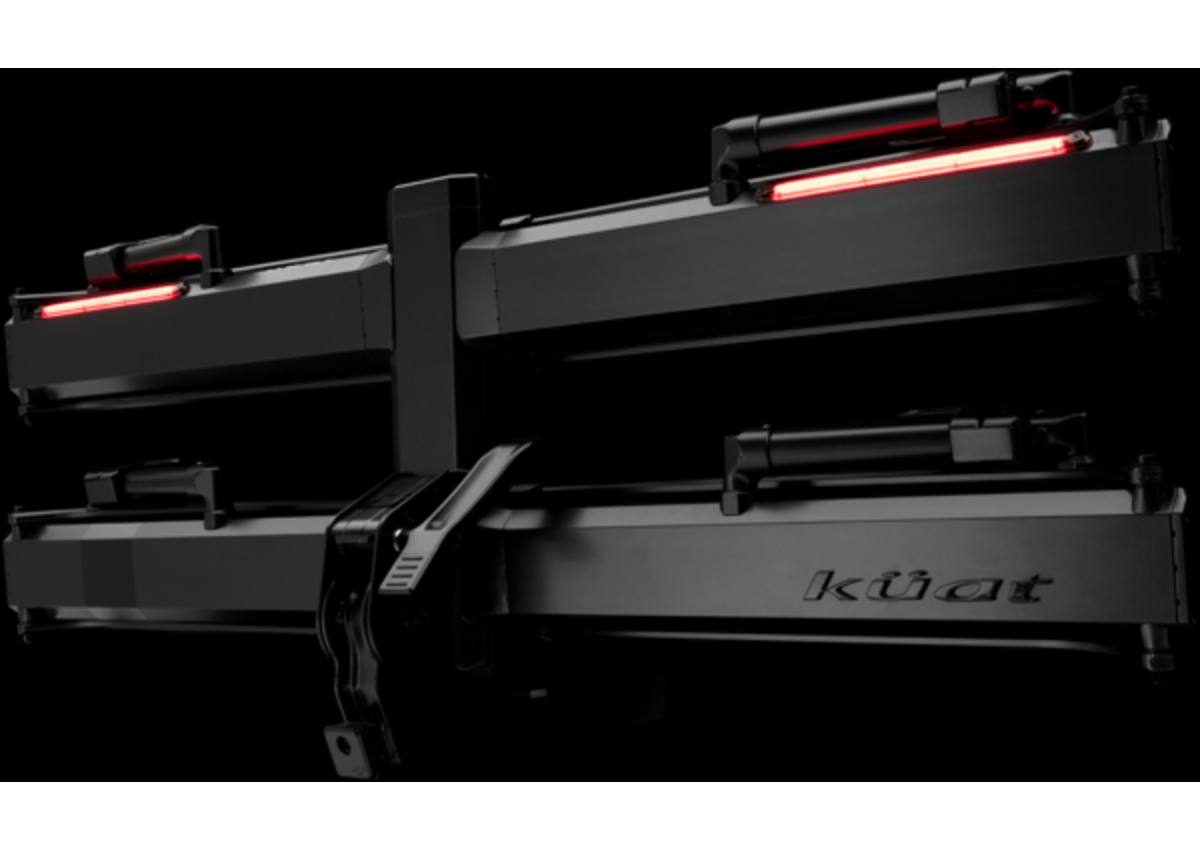 Kashima coated hydro-pneumatic arms make loading and unloading a one-handed operation. Touchless arms grab the tires, keeping your bike secure. Integrated LED tail lights synchronize with your vehicle, providing enhanced rear visibility and on-road safety