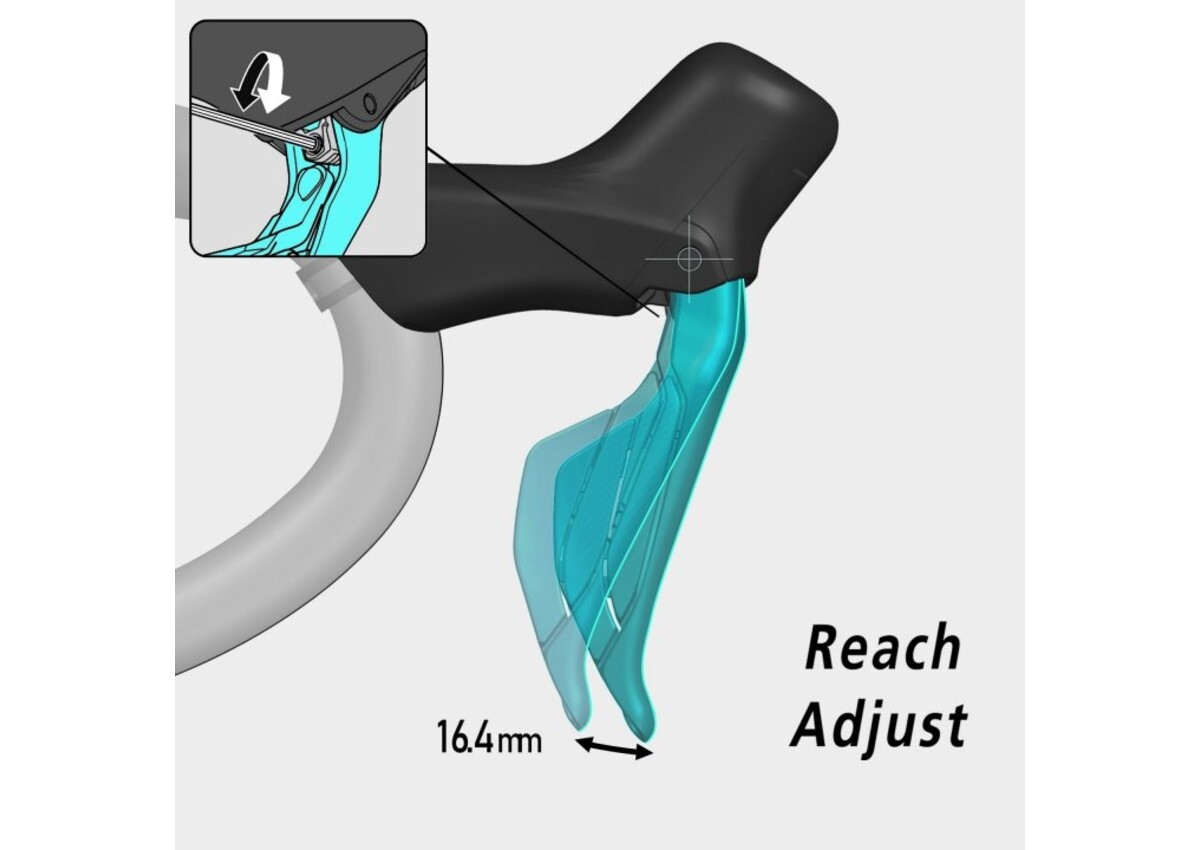But also on the technical side, the compact dual control levers know how to convince. While the reach adjustment mechanism allows adaptation to different hand sizes or riding styles and thus promises more control in racing, the button functions that can be individually assigned via E-Tube app<\/strong> benefit an essential task of the control units: the shifting performance. A self-developed circuit ensures reliable and fast signal transmission, which not only enables more precise and direct shifting processes in manual mode, but also more intuitive ones. Athletes who want to devote themselves fully to racing can also leave the gear changes completely or at least partially to the Synchronized Shifting<\/strong> technology.<\/p>\n