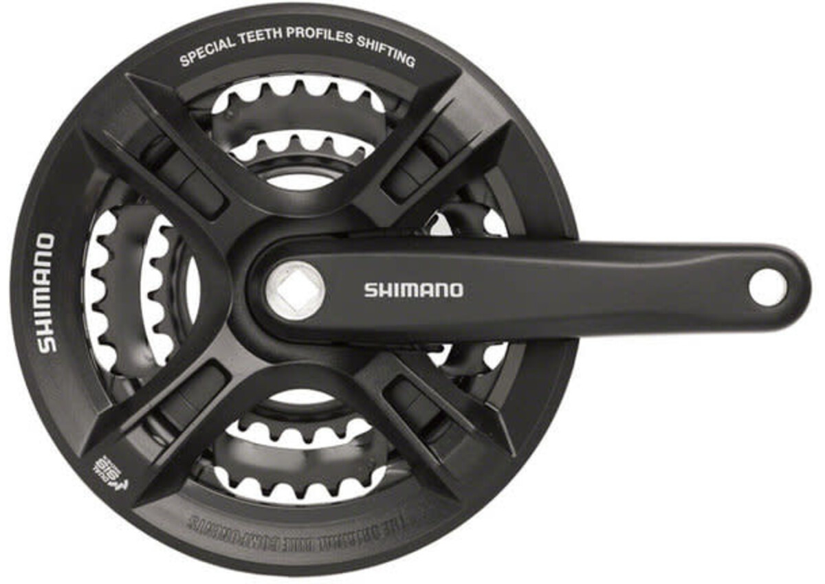 Shimano Altus M311 cranksets provide durability and reliable shifting for triple chainring drivetrains.