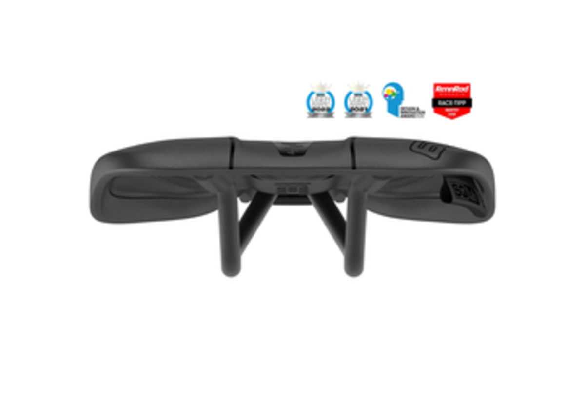 The proven SQlab ERGOWAVE® form relieves the soft tissue area and prevents energy- consuming bad posture. The saddle shell is weight and flex optimized down to the last detail. More longitudinal stiffness and perfectly coordinated material flex to the side mean more comfort with less weight at the same time.