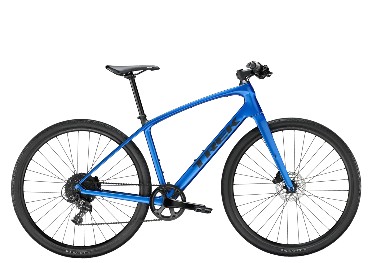 FX Sport 5 is a carbon fiber fitness bike for riders who want the speed of a lightweight road bike with the comfort and control of a flat handlebar.