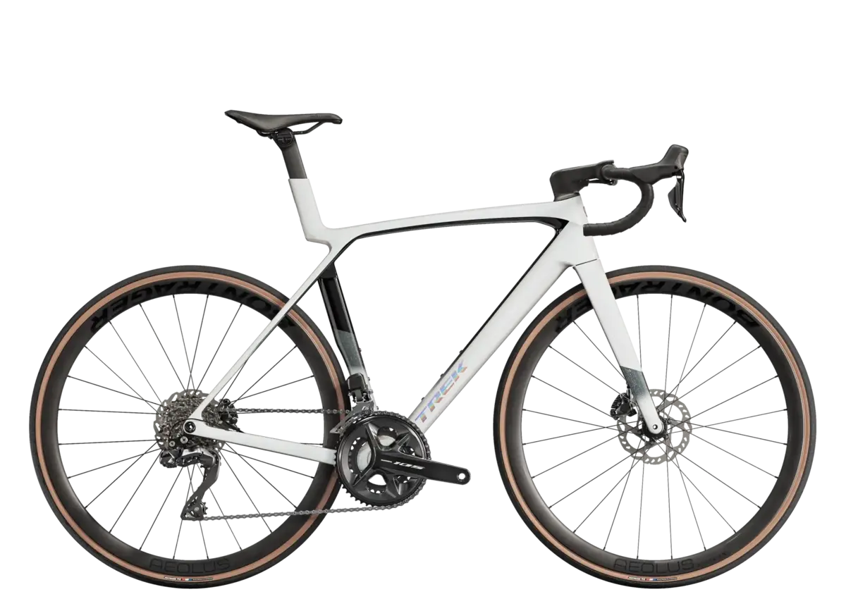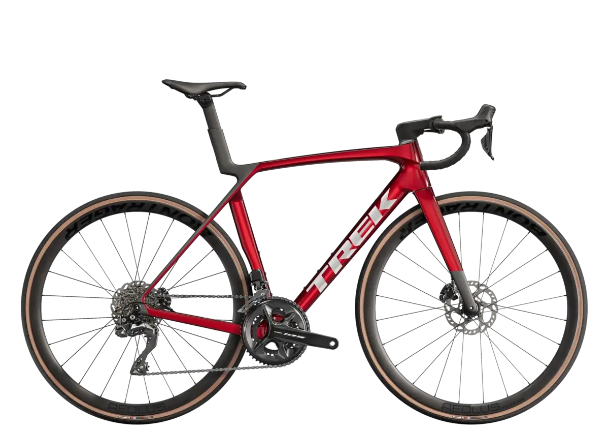 Madone SL 6 Gen 8 is a lightweight aero road bike that brings elite racing tech to a lower price point. It offers similar aero benefits to the pricier Madone SLR Gen 8, but with a more economical OCLV 500 Carbon layup and two-piece cockpit with hidden cable routing. It's built to race with geometry that keeps you comfortable on the climbs and perched for the attack. A Shimano 105 Di2 electronic groupset keeps the price down without sacrificing lightning-fast electronic shifting. Plus, it's topped off with carbon wheels for extra lightweight performance.